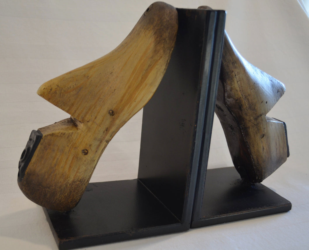 These stunning and unusual book ends are made of hand painted resin and fashioned to look like an old-fashioned wooden shoe mould that would have been used by a shoemaker. The frame is painted metal and stands at 23cm high. They come as a pair - $119.95 for the set of two.